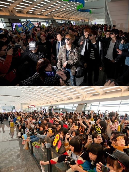 공항에는 씨엔블루를 보기 위해 전날부터 모인 팬들로 인산인해를 이뤘다. 현지 시각 낮 12시 씨엔블루가 공항에 모습을 드러내자, 팬들은 멤버들의 이름이 적혀 있는 플래카드를 들고 열렬히 환호했다. 뜨거운 인기를 반영하듯 이들을 연호하는 팬들로 공항이 마비되는 사태가 벌어지기도 했다.
