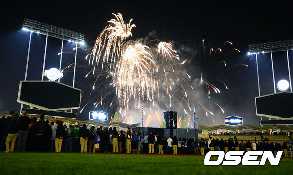 경기를 마치고 다저스타디움에서 불꽃놀이가 펼쳐지고 있다. / rumi@osen.co.kr