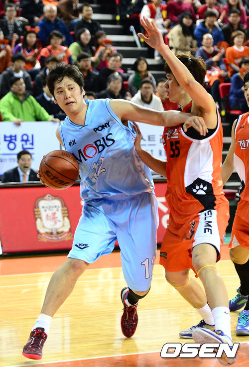 6일 오후 인천 삼산체육관에서 열린 'KB 국민카드 2012-2013 프로농구' 4강 플레이오프 울산 모비스와 인천 전자랜드의 경기, 2쿼터 모비스 함지훈이 전자랜드 김상규의 수비를 돌파하고 있다.