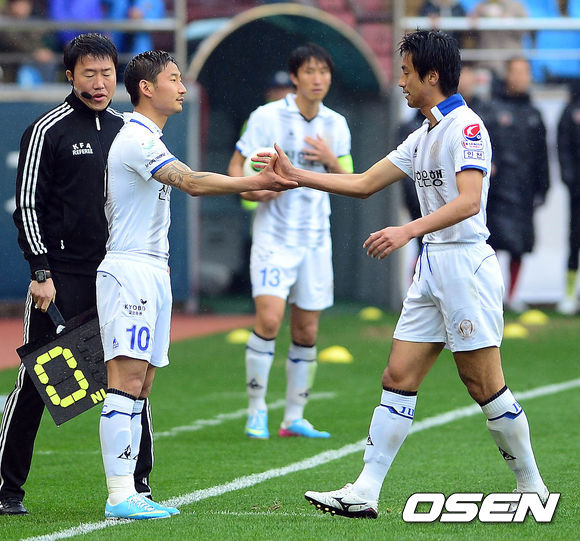 6일 오후 포항 스틸야드에서 열린 '2013 K리그 클래식' 포항 스틸러스와 인천 유나이티드의 경기 후반 이천수가 남준재와 교체되고 있다.
