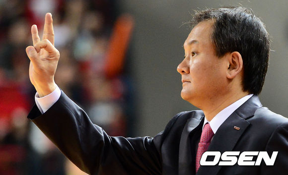 6일 오후 인천 삼산체육관에서 열린 'KB 국민카드 2012-2013 프로농구' 4강 플레이오프 울산 모비스와 인천 전자랜드의 경기, 3쿼터 모비스 유재학 감독이 선수들에게 작전을 지시하고 있다.