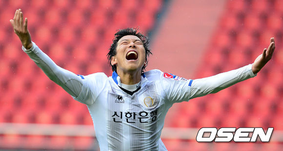 6일 오후 포항 스틸야드에서 열린 '2013 K리그 클래식' 포항 스틸러스와 인천 유나이티드의 경기 후반 손대호가 골을 넣은 후 기뻐하고 있다.