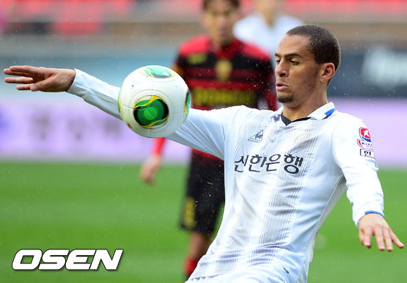 6일 오후 포항 스틸야드에서 열린 '2013 K리그 클래식' 포항 스틸러스와 인천 유나이티드의 경기 후반 디오고가 볼을 다루고 있다.