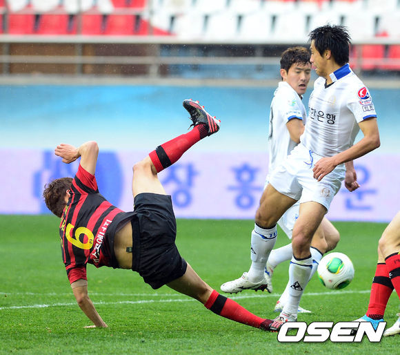 포항은 6일 오후 포항스틸야드서 열린 K리그 클래식 2013 5라운드 인천과 홈경기서 후반 28분 손대호에게 선제골을 내준 뒤 3분 뒤 황진성의 페널티킥 동점골로 1-1로 비겼다. / baik@osen.co.kr