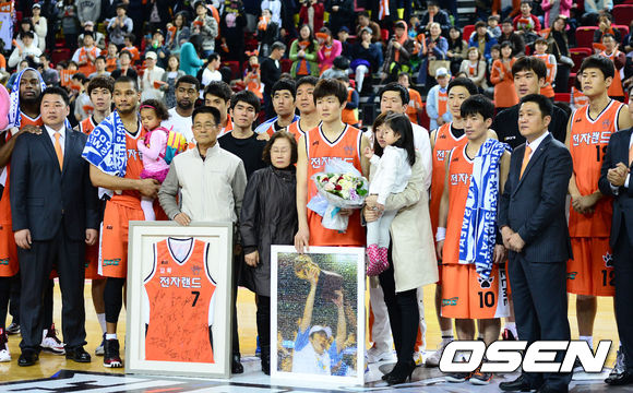 경기 종료 후 전자랜드 강혁이 은퇴식에서 기념 촬영을 하고 있다. /sunday@osen.co.kr