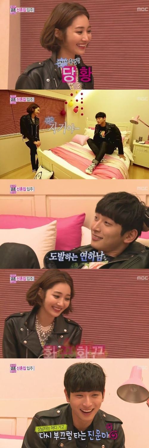 이날 정진운과 고준희는 아기자기한 신혼집의 모습에 매우 만족하는 모습이었다. 이들은 천천히 집 구경을 하면서 안방으로 들어갔다. 안방에는 아늑한 침대가 놓여있었다.