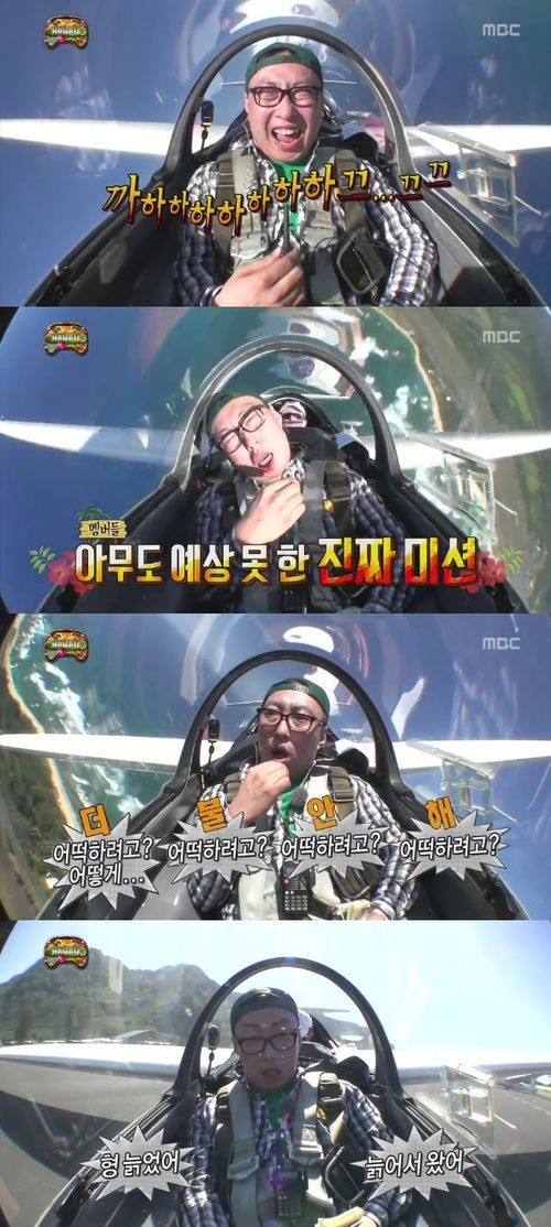 이뿐 아니라 글라이더는 옆으로 누워서 비행하는가 하면 동체를 눕혀 쾌속비행, 박명수는 계속해서 "오 마이 갓"과 "재석아"를 외쳤고 미친 사람처럼 웃기만 했다.
