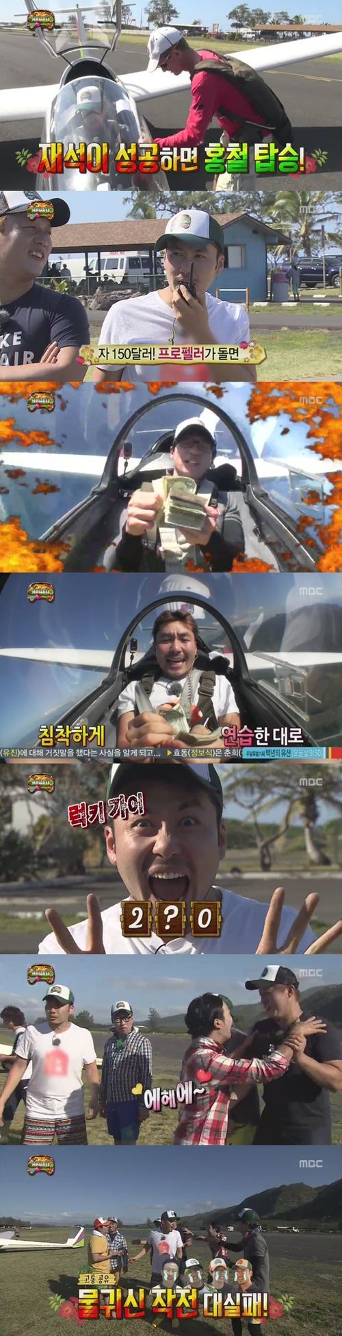 첫 번째 도전자로 나선 박명수는 지폐세기에 실패했다. 이에 나머지 멤버들이 모두 성공해야 하는 상황이었다. 두 번째 도전자로 나선 길은 지폐세기에 성공했고 이어 유재석이 나섰다. 이때 유재석 다음 차례인 노홍철은 비행 공포 때문에 유재석의 실패를 기원했다.