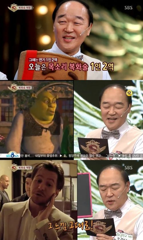 장광은 이날 5년 전부터 훈련 중인 복화술 시범을 보인 가운데, 35년 동안 베테랑 성우로 활동한 사실을 알렸다. 이날 그는 슈렉 연기를 펼치며 엉뚱하면서도 순수한 슈렉 캐릭터를 고스란히 재연해 큰 박수를 받았다.