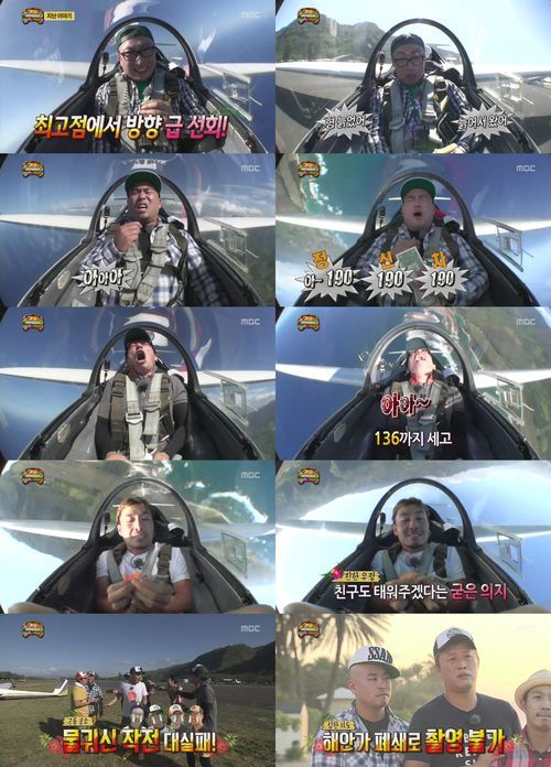 마지막으로 무동력 글라이더에서 박명수, 길, 유재석이 뉴(NEW) F1을 노려볼만한 얼굴 표정을 선보였다.