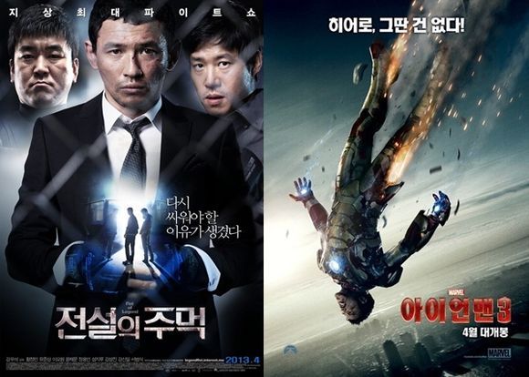 韓美 화제작들인 '전설의 주먹'과 '아이언맨'이 4월 비수기를 화끈하게 달굴 예정이다. '전설의 주먹'은 10일, '아이언맨3'는 25일 개봉해 극장가를 이끈다. 전면적인 맞대결은 아니어도 접전은 피할 수 없을 전망. 올 초 이상 열풍에 가까운 흥행세를 보이고 있는 한국영화와 '웜 바디스'로 기사회생해 '지아이조2'로 불꽃을 피운 외화의 전면 대결이라 주목된다. 이 두 기대작의 대결점을 3가지 포인트로 짚어봤다.