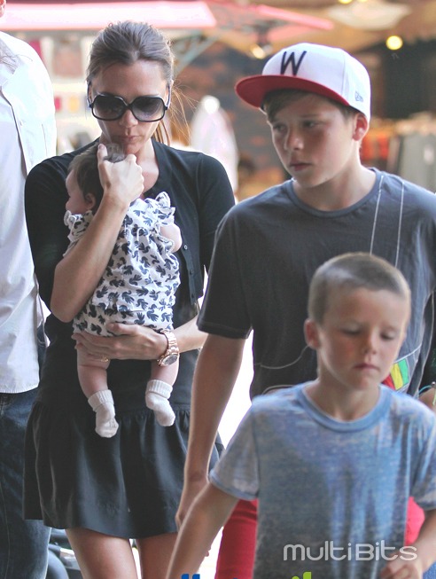 [OSEN/WENN 특약] 빅토리아 베컴과 그의 훈남 아들들의 길거리 활보 장면이 카메란 렌즈 속으로 들어왔다. 어린 딸을 안고 있는 빅토리아의 늘씬한 몸매는 걸그룹 활동 당시처럼 여전히 섹시하고 미모도 그대로지만 그 앞에 걷고 있는 장성한 아들들의 모습이 아이러니하다.