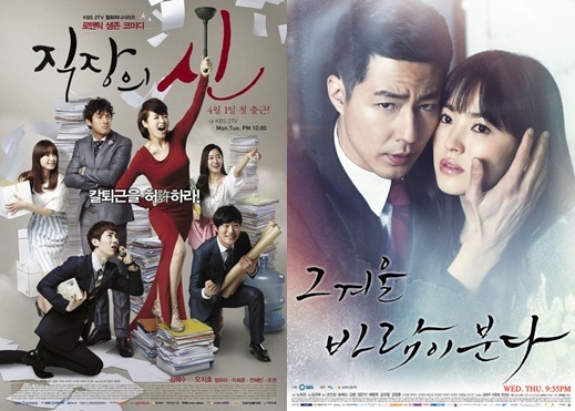 일본 드라마 ‘사랑따윈 필요없어, 여름’을 리메이크, 지난 3일 호평 속에 종영한 SBS ‘그 겨울, 바람이 분다’(이하 ‘그 겨울’)는 첫 수목극 대전에서 활짝 웃으며 성공 드라마의 타이틀을 거머쥐었으며 그 바통을 ‘파견의 품격, 만능사원 오오마에’를 리메이크한 ‘직장의 신’이 무리 없이 받아내며 상승세를 이어가고 있어가고 있는 것.