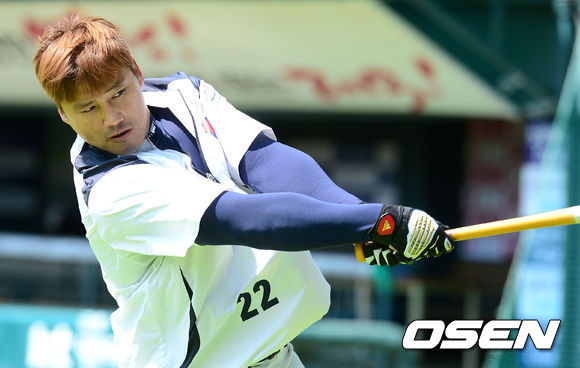 경기에 앞서 두산 홍성흔이 배팅훈련을 하고 있다. 홍성흔은 지난 5일 잠실 LG전 5회초 리즈를 상대하는 과정에서 문승훈 구심의 스트라이크 판정에 강하게 항의, 통산 첫 퇴장을 당했다.