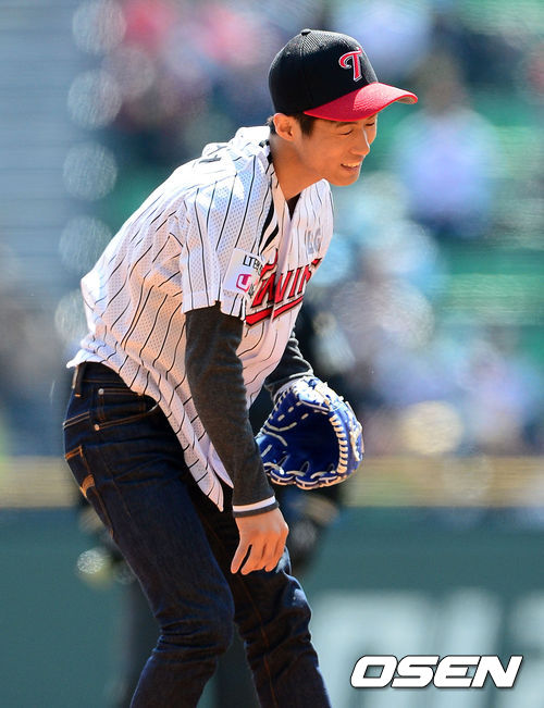 경기에 앞서 '도마의 신' 양학선이 시구를 마치고 아쉬워하고 있다.