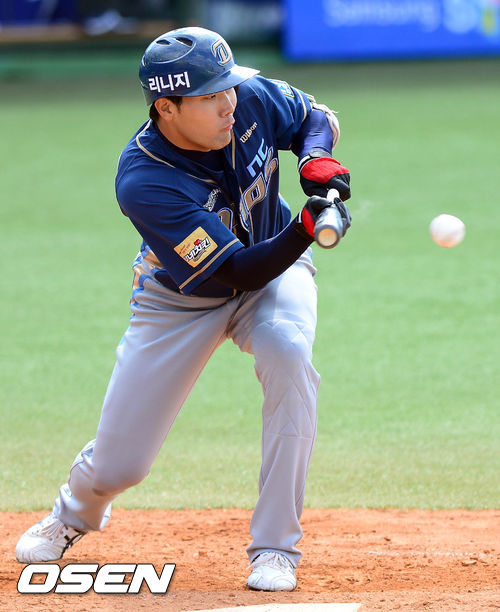 7일 오후 대구구장에서 열린 '2013 한국야쿠르트 세븐 프로야구' 삼성 라이온즈와 NC 다이노스의 경기 4회초 무사 2루 조평호가 희생번트를 치고 있다.