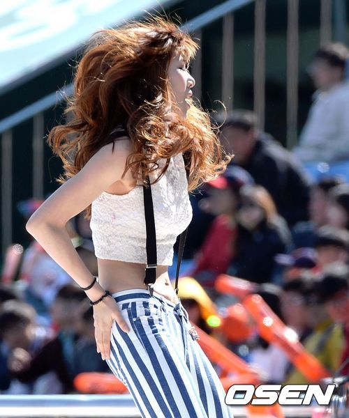 7일 대전 한밭 야구장에서 벌어진 한화 이글스와 넥센 히어로즈의 경기 한화 치어리더가 섹시한 댄스를 선보이고 있다.
