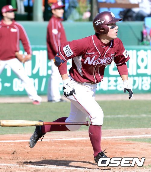 7일 대전 한밭 야구장에서 벌어진 한화 이글스와 넥센 히어로즈의 경기 7회초 2사 2루 서건창이 적시타를 치고 있다.