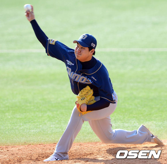 7일 오후 대구구장에서 열린 '2013 한국야쿠르트 세븐 프로야구' 삼성 라이온즈와 NC 다이노스의 경기 6회말 교체된 이민호가 역투하고 있다.