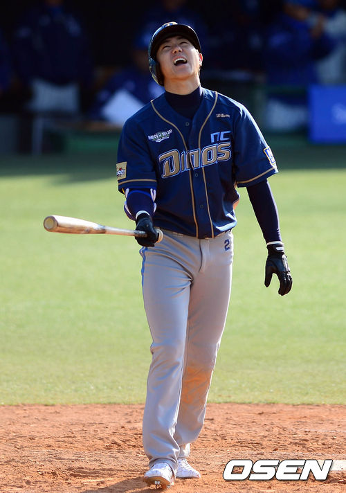 7일 오후 대구구장에서 열린 '2013 한국야쿠르트 세븐 프로야구' 삼성 라이온즈와 NC 다이노스의 경기 8회초 무사 1,2루 차화준이 헛스윙 후 아쉬워하고 있다.