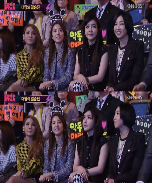 이날 생방송에는 파이널 전에 앞서 객석의 모습이 카메라에 담겼다. 이날 객석에는 2NE1의 전 멤버가 모두 자리해 눈길을 끌었다.