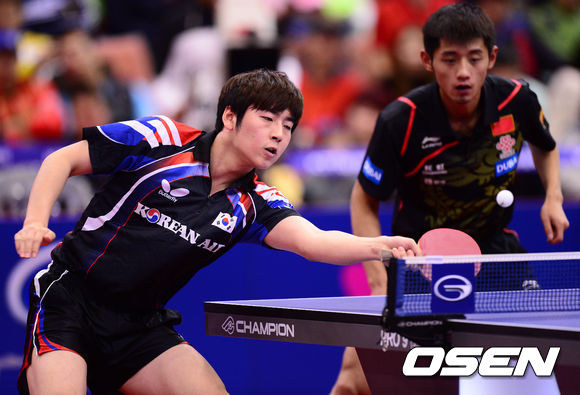 7일 오후 인천광역시 연수구 송도글로벌대학에서 '2013 대한항공 2013 코리아오픈 국제탁구대회' 남자복식 결승전, 이정우-마룽조 와 서현덕-장지커의 경기가 열렸다.서현덕 장지커 조가 세트스코어 3-2(11-8 7-11 11-8 7-11 11-8)로 우승을 차지했다.