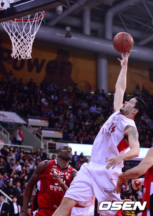 4쿼터, SK 김민수가 탭슛을 시도하고 있다.