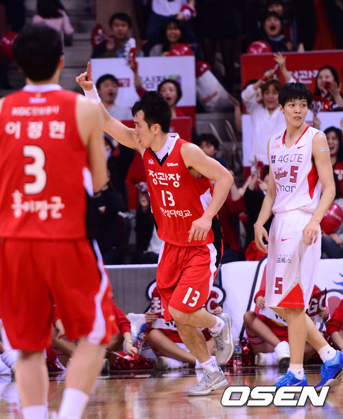문경은 감독이 이끄는 서울 SK는 7일 안양실내체육관에서 열린 2012-2013 KB국민카드 프로농구 4강 플레이오프 안양 KGC인삼공사와 5차전서 62-56으로 승리했다. 이날 SK는 애런 헤인즈(27점, 8리바운드, 3블록슛)와 김선형(13점, 5리바운드, 5어시스트)의 활약에 힘입어 승리를 챙겼다. SK는 5전 3선승제 4강 플레이오프서 3승 1패를 기록하며 지난 2001~2002시즌 이후 11시즌 만에 챔피언결정전 진출에 성공했다.