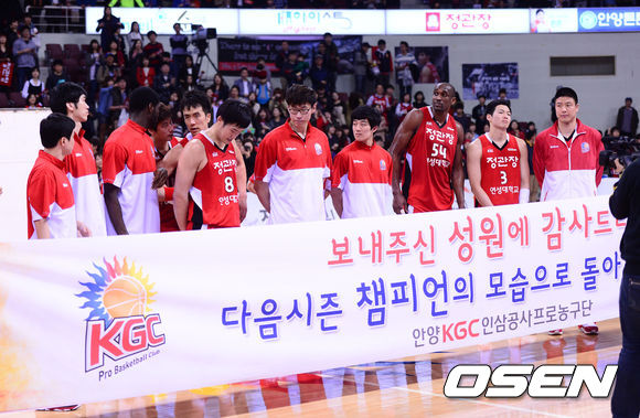 KGC 선수들이 한 시즌 동안 성원해 준 팬들에게 인사 하고 있다./ dreamer@osen.co.kr