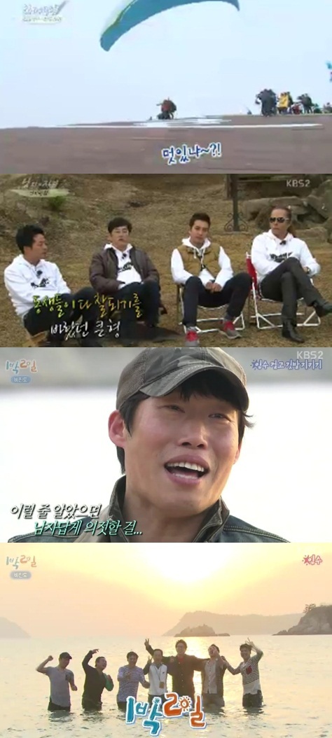이날 ‘해피선데이’는 ‘남자의 자격’(이하 ‘남격’)의 마지막 회를 방송했다. 이날 멤버들은 앙코르미션 패러글라이딩에 도전, 하늘에서 아쉬운 종영 인사를 남겼다. 또 ‘1박2일’은 멤버 김승우와 최재형 PD가 하차한 자리에 새 멤버 유해진과 이세희 PD가 합류한 첫 회가 방송돼 호평을 이끌어냈다.