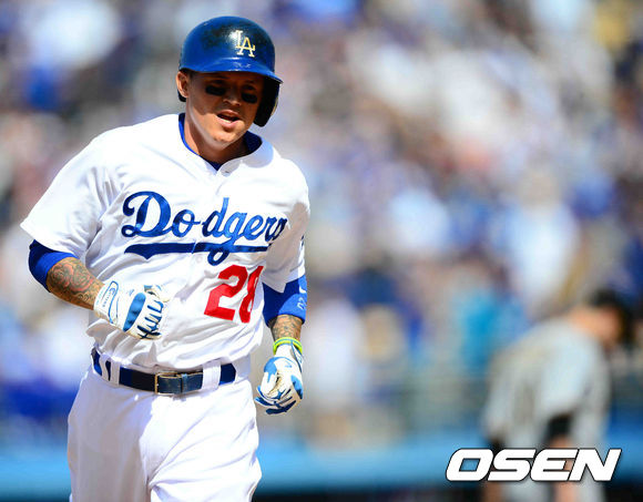 8일 새벽(이하 한국시간) 미국 캘리포니아 로스앤젤레스 다저스타디움에서 열린 LA 다저스와 피츠버그 파이어리츠와의 3차전 경기, 7회말 다저스 선두타자 셀러스가 솔로홈런을 날리고 베이스를 돌고 있다