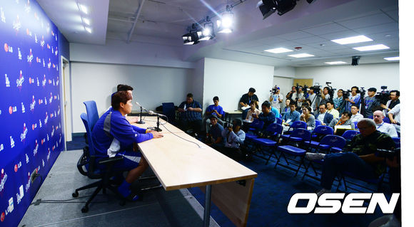 류현진이 경기 종료 후 기자회견에 참석하고 있다. /rumi@osen.co.kr