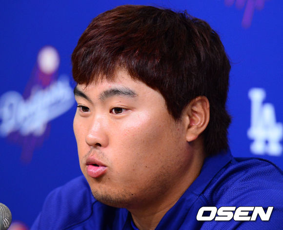 류현진이 경기 종료 후 기자회견에 참석하고 있다. /rumi@osen.co.kr