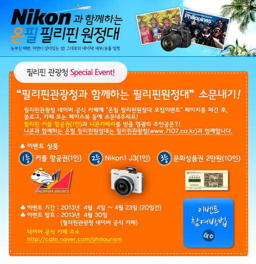 필리핀 여행정보 사이트 온필닷컴, 세계적인 카메라 브랜드 니콘과 함께 하는 이번 행사는 마닐라, 세부/보홀의 아름다운 자연을 카메라에 담아오는 미션을 수행하는 이벤트다. 23일 마감.