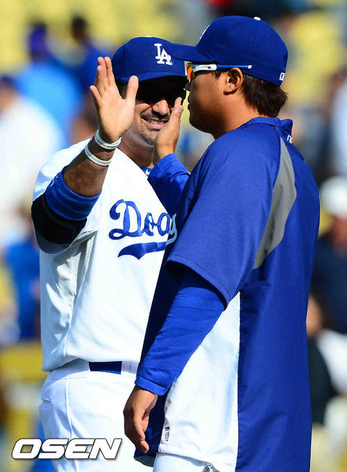 LA 다저스 류현진(26)이 첫 승을 도운 팀 동료들에게도 고마움을 잊지 않았다. 류현진은 8일(이하 한국시간) 미국 캘리포니아 로스앤젤레스 다저스타디움에서 열린 '2013 메이저리그' 피츠버그 파이어리츠와 홈경기에 선발등판, 6⅓이닝 3피안타 2볼넷 6탈삼진 2실점 역투로 승리 투수가 됐다. 류현진의 호투도 빛났지만, 동료들의 지원없이는 이렇게 쉽게 이길 수 없었다.