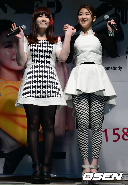 소녀듀오 피프틴앤드(15&, 박지민·백예린)가 8일 8일 밤 서울 강남역 M스테이지에서 게릴라 콘서트를 열었다. 피프틴앤드가 팬들을 향해 인사하고 있다.