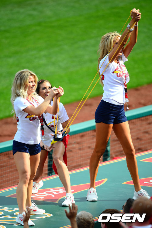 세인트루이스의 치어리더들이 상품을 쏴주고 있다. / rumi@osen.co.kr