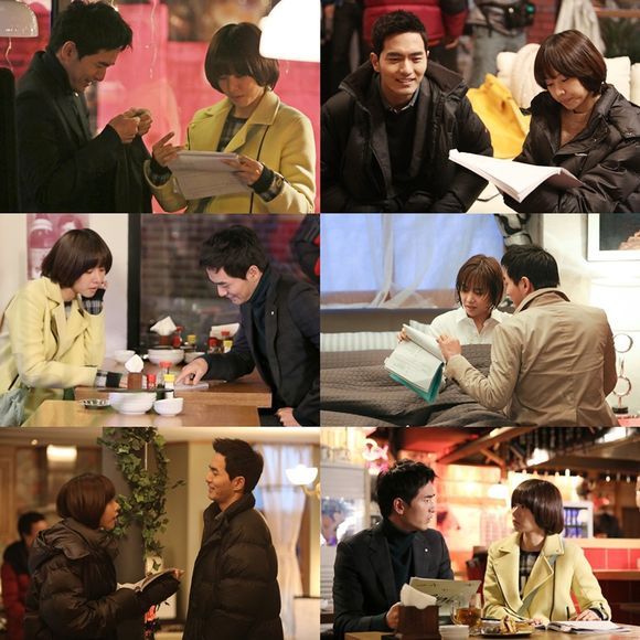 사진 속 두 사람은 나란히 앉거나 서로 마주보며 대본 연습에 열중하고 있다. 편안한 미소를 지은 채 대사를 하나하나 짚어가며 서로를 돕고 있는 모습이 다정한 분위기를 풍긴다.