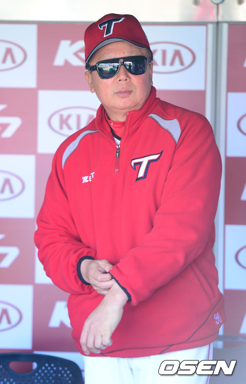 9일 오후 광주 무등경기장에서 열리는 '2013 한국야쿠르트 세븐 프로야구' KIA 타이거즈 대 두산 베어스의 경기를 앞두고 KIA 선동렬 감독이 그라운드를 바라보고 있다.
