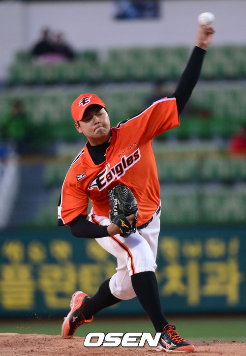 9일 오후 대구구장에서 열린 '2013 한국야쿠르트 세븐 프로야구' 삼성 라이온즈와 한화이글스 경기 한화 선발 유창식이 공을 뿌리고 있다.