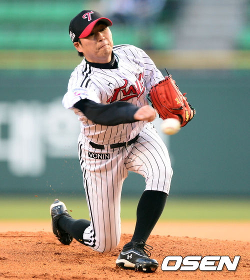 9일 오후 서울 잠실야구장에서 열린 2013 한국야쿠르트 세븐프로야구 LG 트윈스와 NC 다이노스의 경기, 1회초 LG 선발 투수 우규민이 힘차게 공을 던지고 있다.