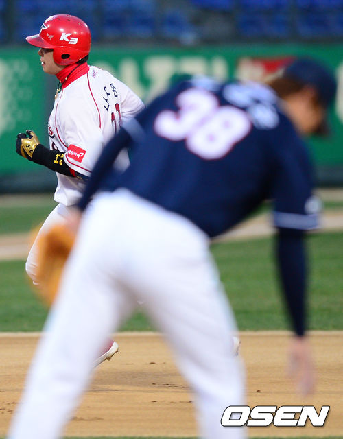 9일 오후 광주 무등경기장에서 '2013 한국야쿠르트 세븐 프로야구' KIA 타이거즈 대 두산 베어스의 경기가 열렸다. 1회말 KIA 공격 2사 2루 상황 4번 나지완이 선제 좌월 투런포를 날린 뒤 그라운드를 돌고 있다.