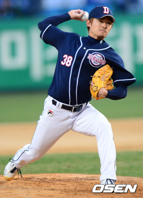 9일 오후 광주 무등경기장에서 '2013 한국야쿠르트 세븐 프로야구' KIA 타이거즈 대 두산 베어스의 경기가 열렸다. 1회말 두산 선발 노경은이 힘차게 공을 던지고 있다.