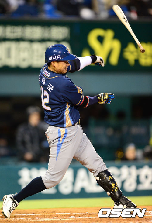 9일 오후 서울 잠실야구장에서 열린 2013 한국야쿠르트 세븐프로야구 LG 트윈스와 NC 다이노스의 경기, 3회초 1사에서 NC 김태군이 스윙을 하며 배트를 놓치고 있다.