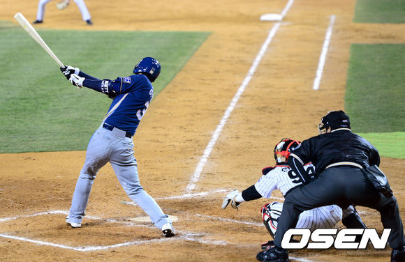 9일 오후 서울 잠실야구장에서 열린 2013 한국야쿠르트 세븐프로야구 LG 트윈스와 NC 다이노스의 경기, 4회초 1사 2,3루에서 NC 이현곤이 내야 안타를 치고 있다.
