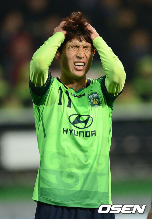 9일 오후 전주 월드컵경기장에서 열린 2013 아시아축구연맹(AFC) 조별리그 4차전 전북 현대와 우라와 레즈의 경기 후반 전북 이승기가 골찬스를 놓치고 아쉬워하고 있다.