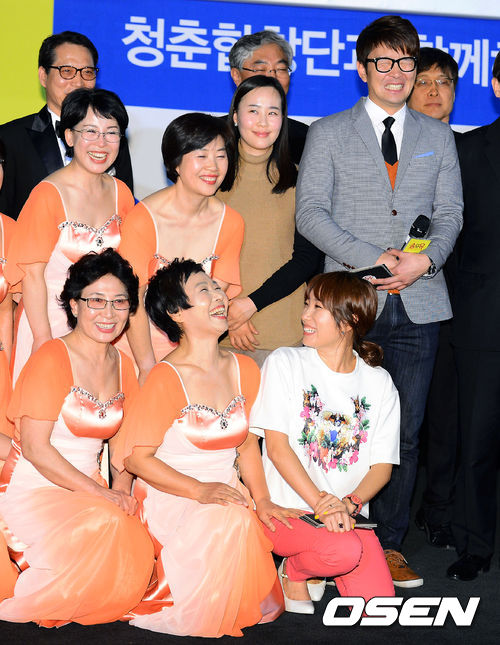 KBS 2TV ‘해피선데이-남자의 자격’(이하 남격) 합창단과 정경미 윤형빈이 포토타임을 갖고 있다.