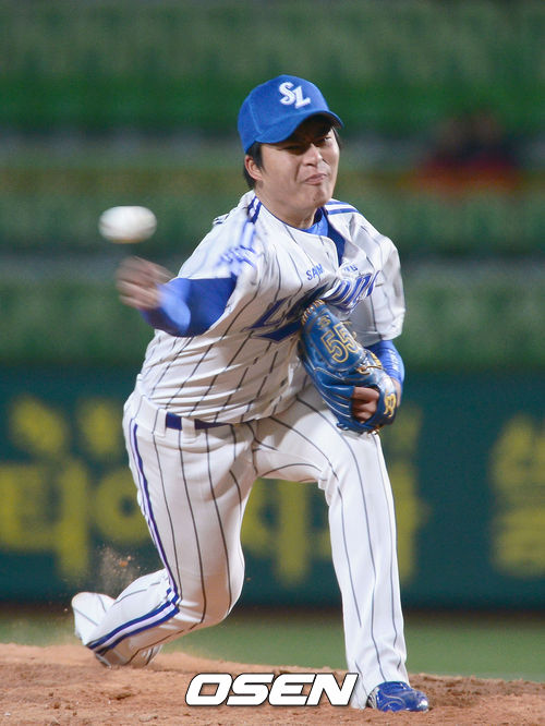 9일 오후 대구구장에서 열린 '2013 한국야쿠르트 세븐 프로야구' 삼성 라이온즈와 한화이글스 경기 한화 7회초 공격때 구원투수로 나온 삼성 심창민이 공을 뿌리고 있다.