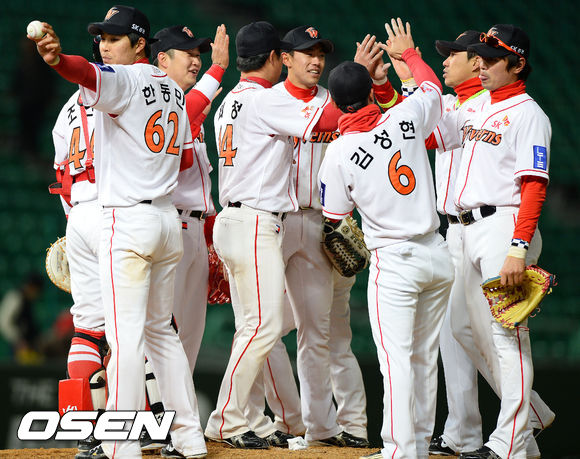 경기종료 후 SK 선수들이 승리의 기쁨을 나누고 있다. / soul1014@osen.co.kr
