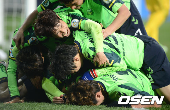 동점골을 넣은 전북 서상민이 동료들에게 기뻐하고 있다. / youngrae@osen.co.kr